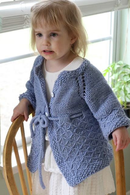 I don't think I ever posted this sweet coat I knitted for Laura last spring. Really, it's only begun to fit her this spring.