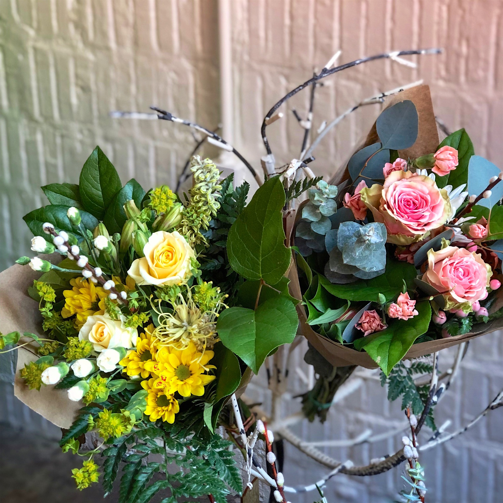 I continue my work at the flower shop. I loved these two bouquet colors. I've got to figure out something for this Monday -- Easter colors.